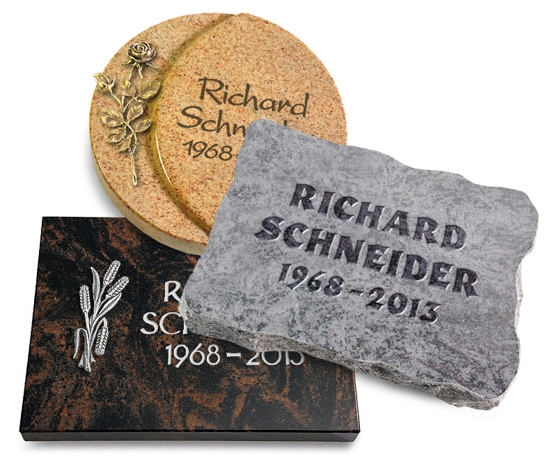 Sie suchen nach dem besonderen, schönen Grabmal für einen einen geliebten Menschen: MEMORUM-Grabmale ist der größte Online – Anbieter von günstigen Sandstrahl gravierten modernen Grabmalen und Grabeinfassungen bzw. Grabsteine für Ihr Rasengrab aus Naturstein. Wir arbeiten mit Steinmetzen in ganz Deutschland zusammen – sogar viele Bestatter gehören zu unserem Kundenstamm, Bestatter die dann unsere Grabmale beim Trauerfall Ihren Kunden – Beisetzung gemeinsam mit einer Grabeinfassung von uns als Komplettpaket anbieten können. MEMORUM ist ein Steinmetz Meisterbetrieb, mit 3 Bildhauermeistern, unser Qualitätsanspruch setzt Maßstäbe, besuchen Sie unser Vielfältiges Angebot an Grabmale für Ihr Rasengrab. Auch für Ihr großes Familiengrab wenn später eine Urne zusätzlich beigesetzt wurde, und Sie nicht möchten das der Grabstein für die zusätzliche Schrift wieder abgebaut werden muss, bietet sich ein Grabmal von MEMORUM perfekt an. Das Grabmal wird einfach nur in die Erde etwas schräg gelegt, und stellt dann eine würdevolle Grabstätte für Ihren geliebten Menschen dar. Bei uns zählt Qualität. Der günstige Preis resultiert aus der standardisierten Beschriftungstechnik von ausgewählten Schriften, umgesetzt in dauerhafter Sandstrahltechnik oder hochwertigen Metallguss Inschriften. Mit unseren Produkten entscheiden Sie sich für stilsichere und dauerhafte Grabgestaltungen vom Meisterbetrieb, die rationell gefertigt und deshalb so überraschend günstig sind.